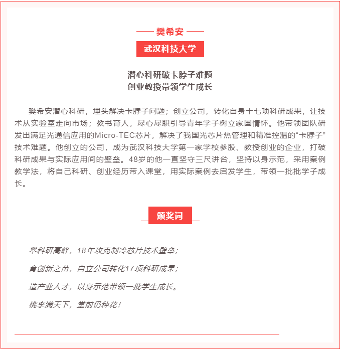 在第38个教师节来临前夕,9月7日下午,2022“寻访荆楚好老师”宣传活动在楚天传媒大厦揭晓评选结果:2名教师荣获特别奖,30名(组)教师荣获“荆楚好老师”荣誉称号,我公司董事长兼总经理樊希安教授,作为武汉科技大学的代表获得该荣誉。