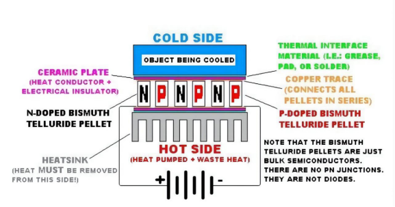 这种半导体材料的神奇之处,除了通电能产生温度差外,逆向也成立。也就是说,给这种材料提供温度差,它还能发出电来。