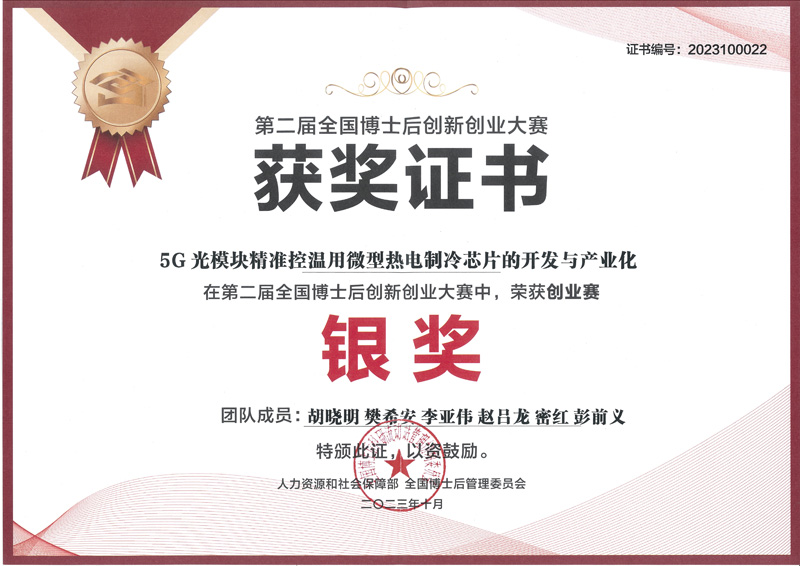第二届全国博士后创新创业大赛总决赛在山东烟台闭幕,湖北省共获得1个金奖、7个银奖、3个铜奖、12个优胜奖和1个优秀组织奖,其中我公司联合创始人兼材料首席研发工程师胡晓明博士后在创业组新能源新材料赛道中排名第三,荣获银奖。这一荣誉既是对赛格瑞博士后团队科研成果与实力的肯定,也是对赛格瑞公司科技创新、产品质量及商业模式等综合实力的认可。