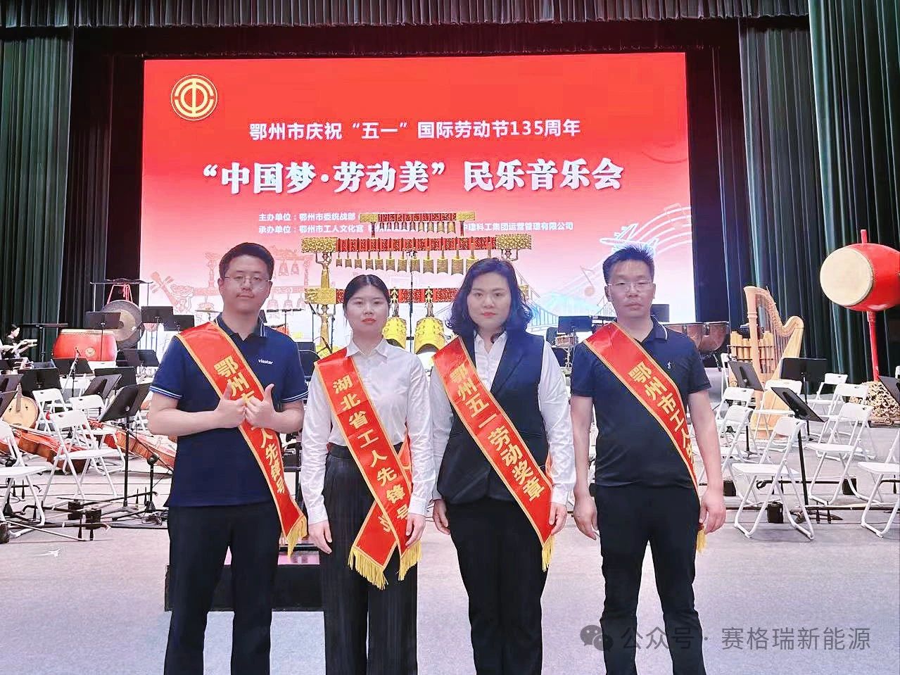 4 月 29 日晚,在鄂州市文化中心 “中国梦・劳动美” 民乐音乐会暨表彰大会上,市人大常委会副主任、市总工会主席叶祥明,市总工会党组书记、常务副主席刘江峰为获奖单位颁奖。我司材料及切割车间作为 10 家获评单位之一,由武汉赛格瑞新材料有限公司总经理赵吕龙先生作为获奖代表登台接受表彰。