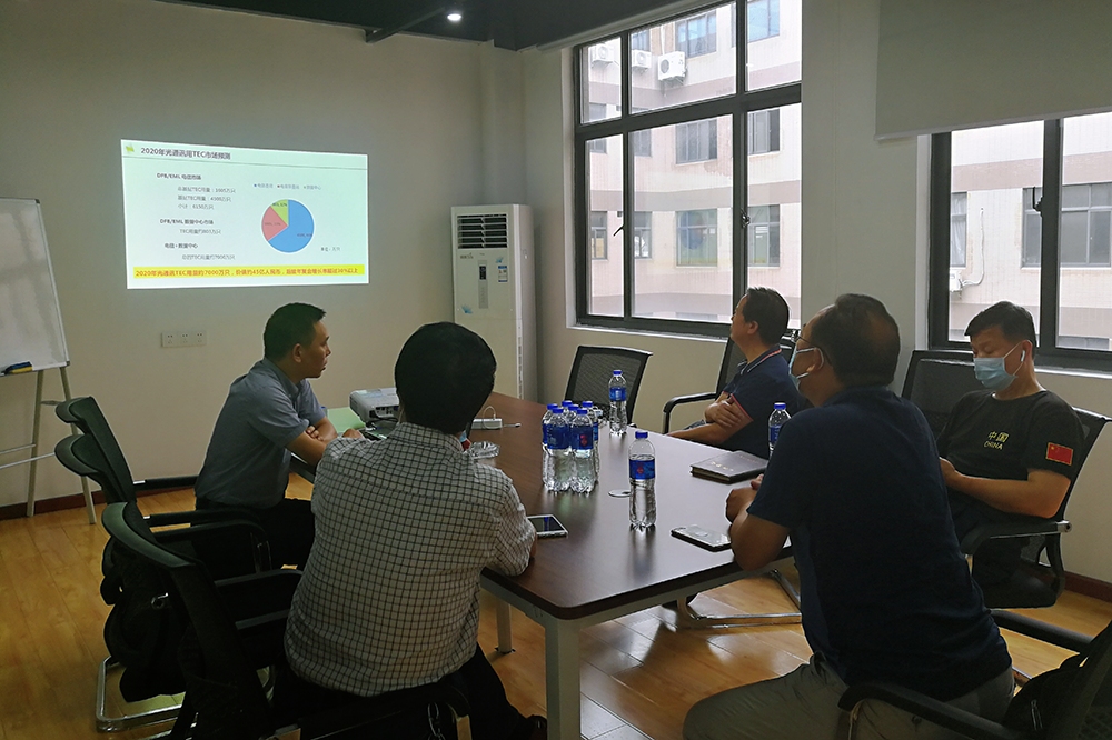 公司董事长樊希安教授向各位领导介绍我公司目前的重点工作是扩大Micro-TEC芯片的生产规模,详细介绍Micro-TEC产业现状、市场分析以及未来的技术发展方向,共同探讨了公司市场状况及未来发展的趋势,赵局长对我公司强大的自主研发优势以及生产规模给予高度的赞扬。