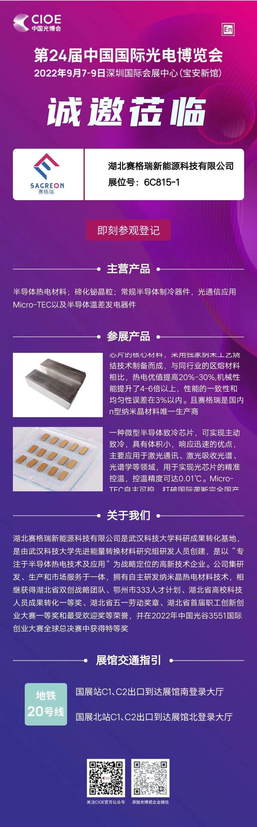湖北赛格瑞新能源科技有限公司诚邀您参观CIOE中国光博会